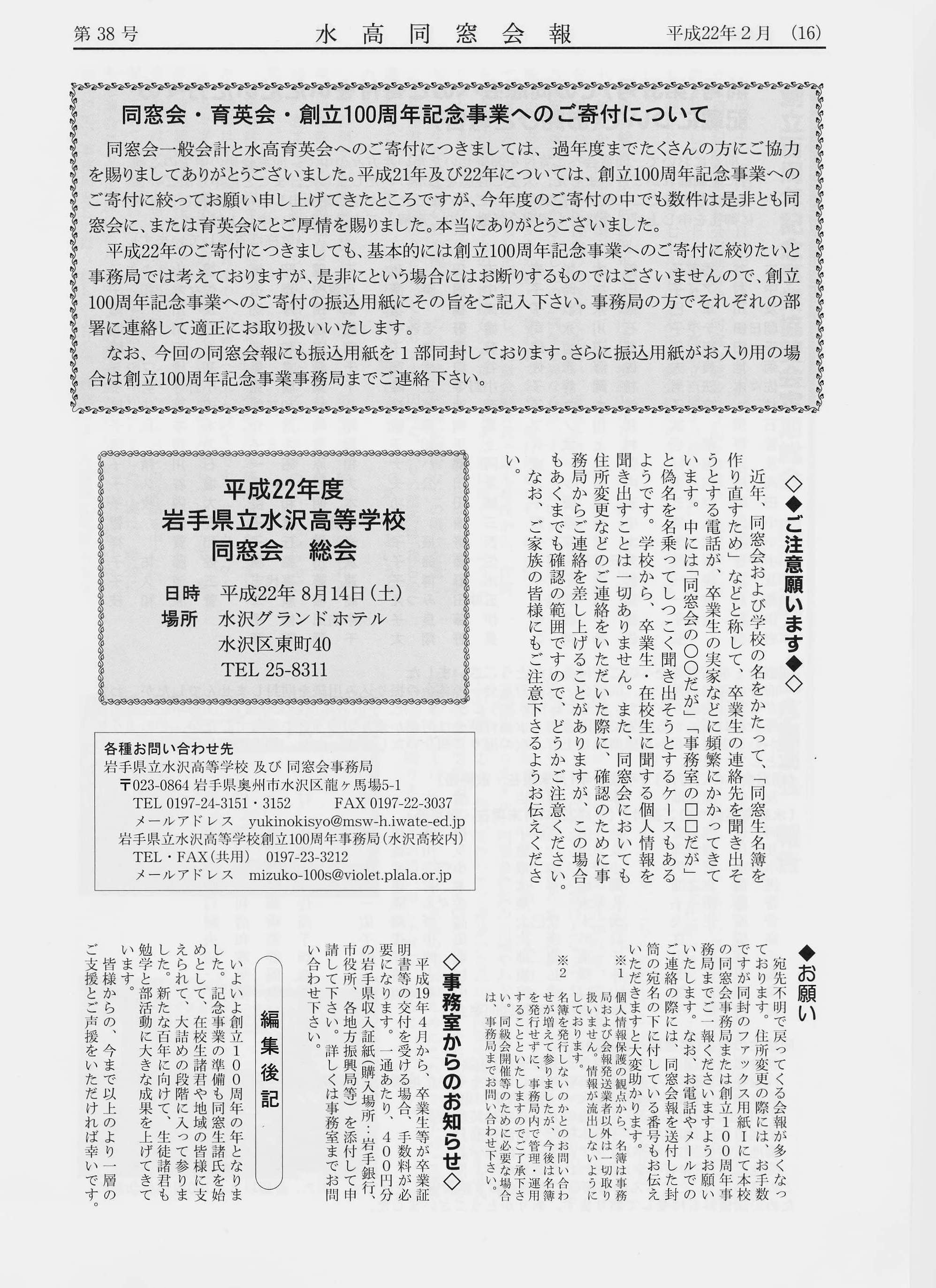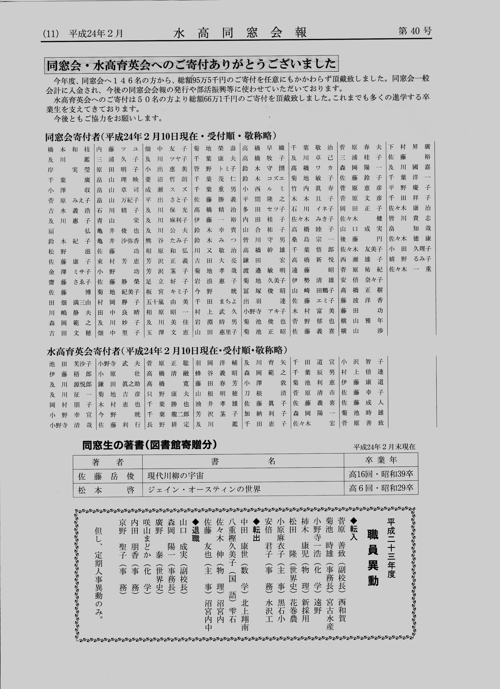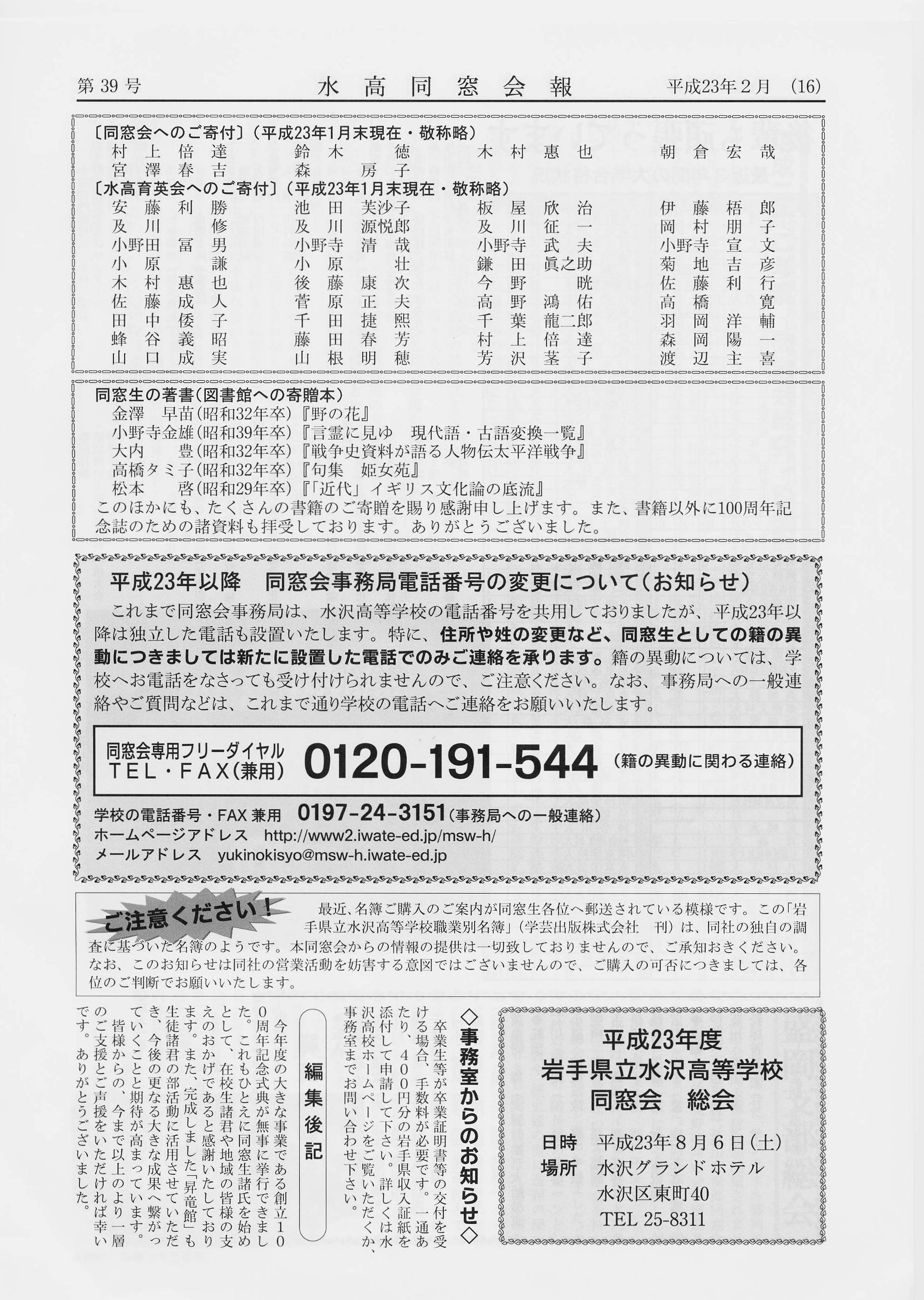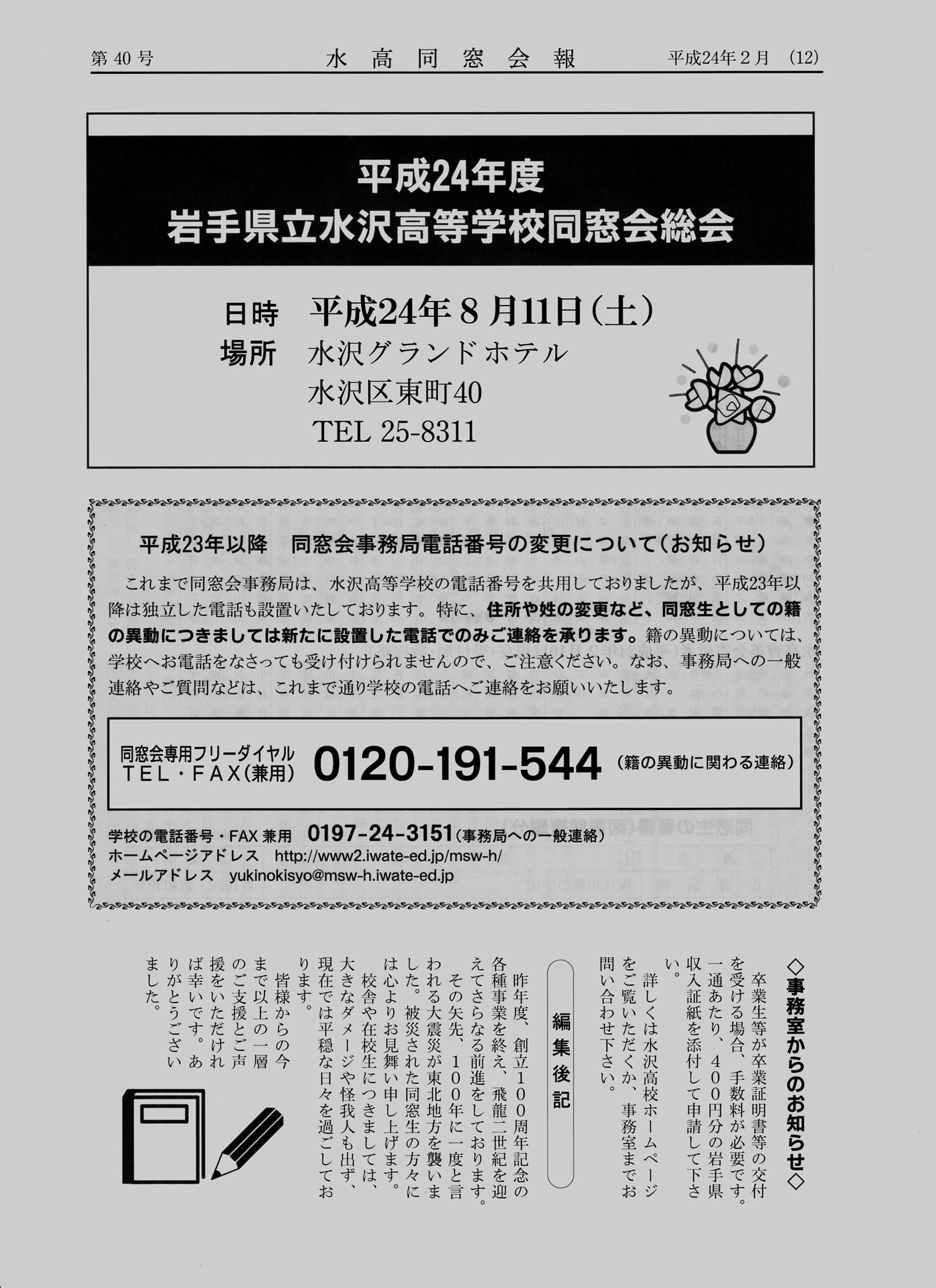 注意事項:第40号12ページに同窓会事務局電話およびファクシミリ番号変更のお知らせがあります。